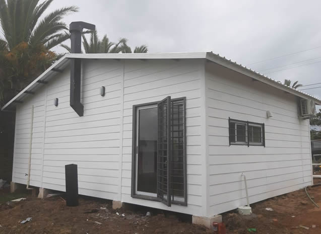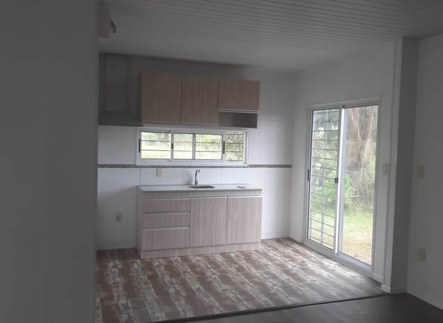 Dos aguas de 54 m2 con dos contenedores 20 pies y prefabricado de 4 metros al medio.